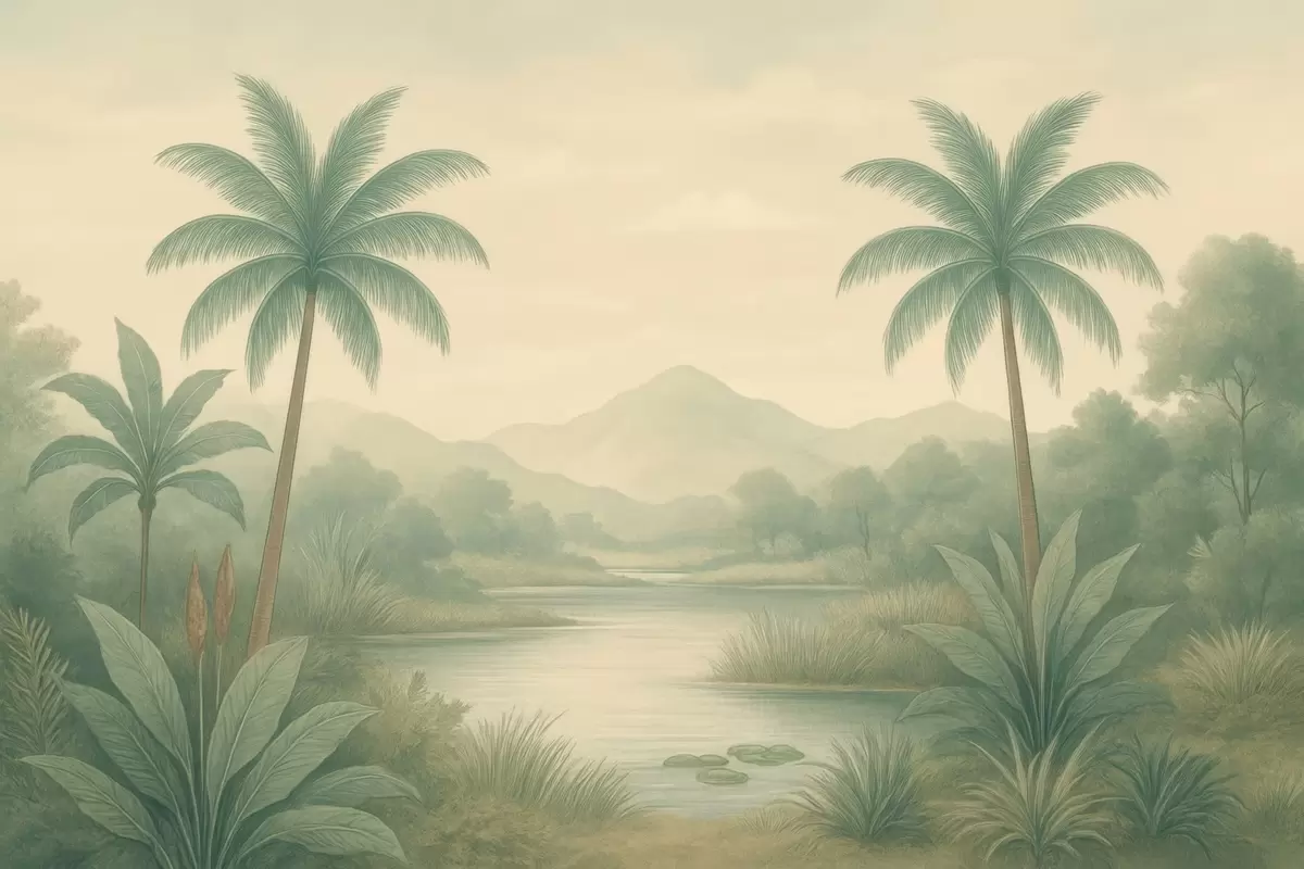 tropical landscape with palm trees and a river - Wall mural (No. w04623)