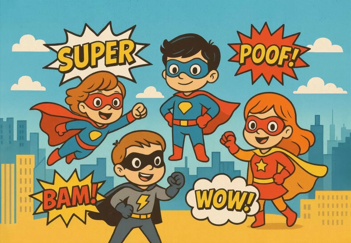 funny comic book-style superheroes - Wall mural (No. w04625)