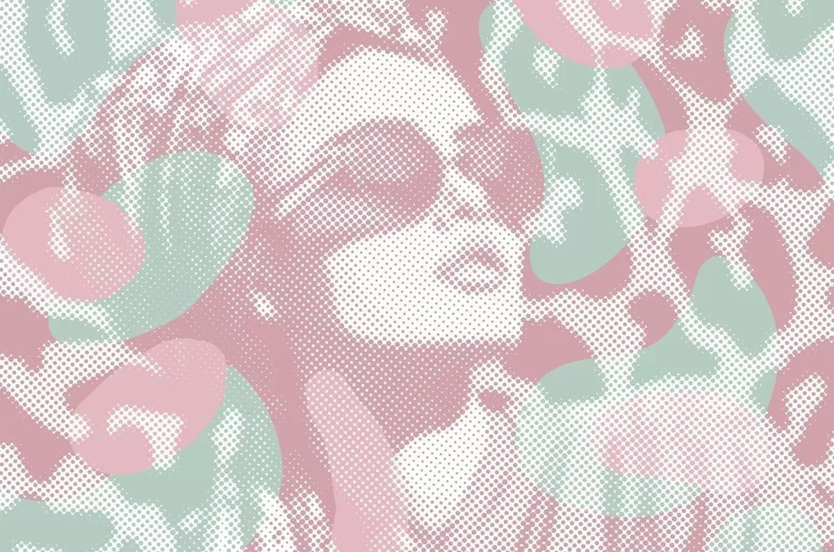 portrait of a woman on a leopard background in a dotted style in pink and green tones - Wall mural (No. w04630v2)