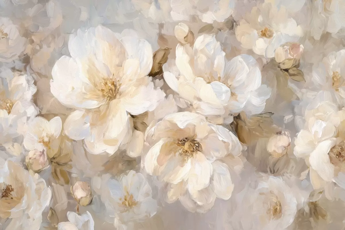 large flowers in white and beige tones in the style of oil painting - Wall mural (No. w04633)