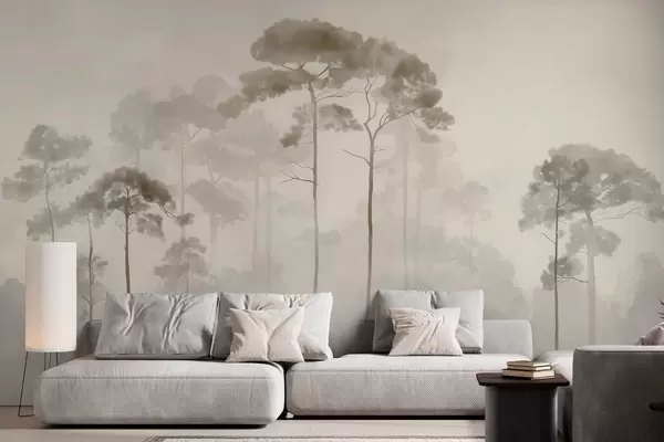 wall murals light silhouettes of pine trees in watercolour style w04634