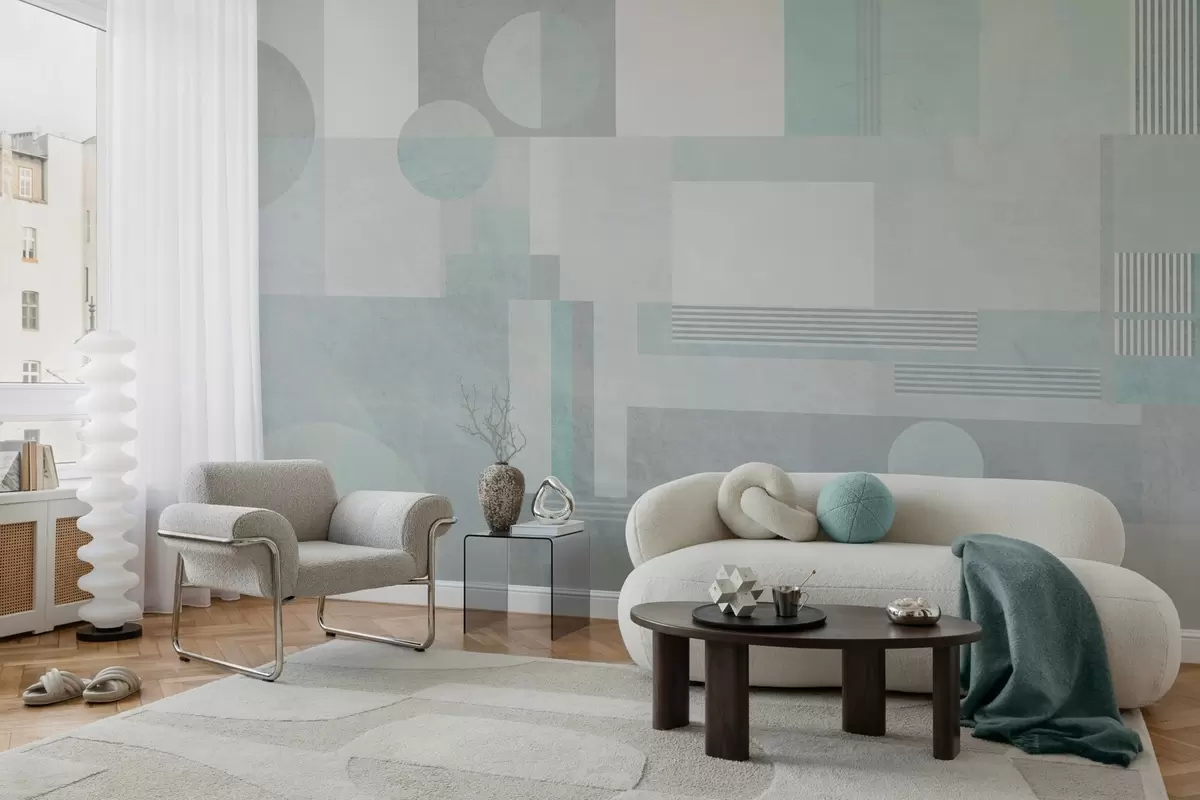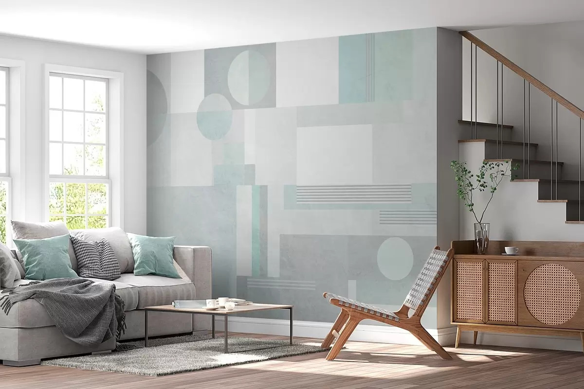 abstract geometry in grey-green tones - Wall mural (No. w04635v3)