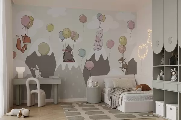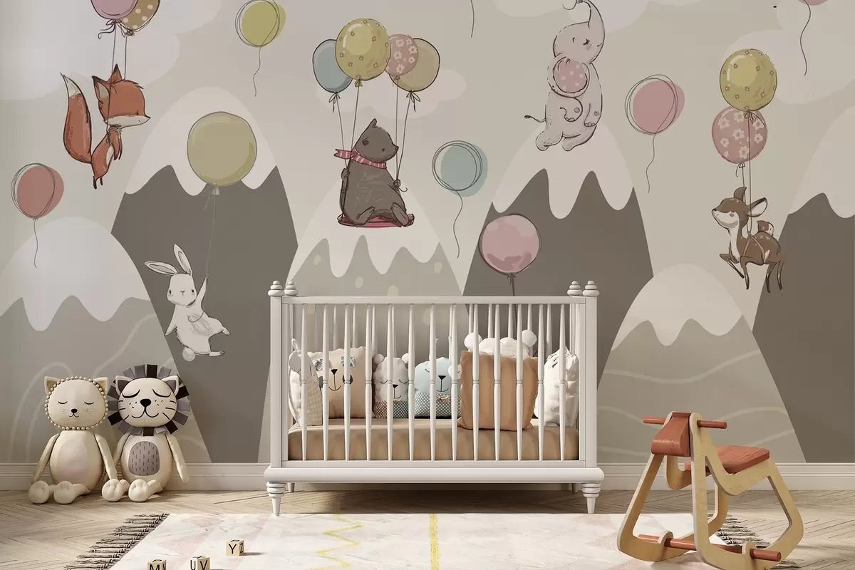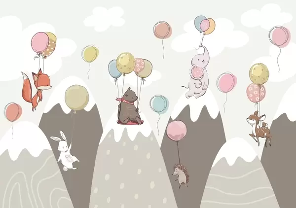 Children's Scandinavian mountains with animals - Wall mural (No. w04651)