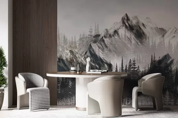 Mountains and coniferous forest - Wall mural (No. w04666)