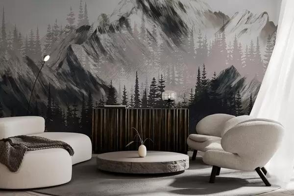 Mountains and coniferous forest - Wall mural (No. w04666)