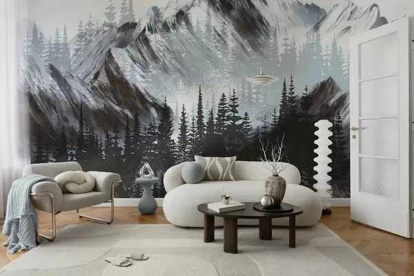 Mountains and coniferous forest - Wall mural (No. w04666v1)