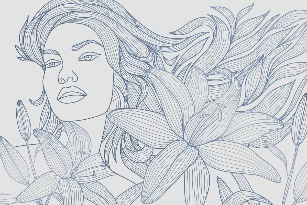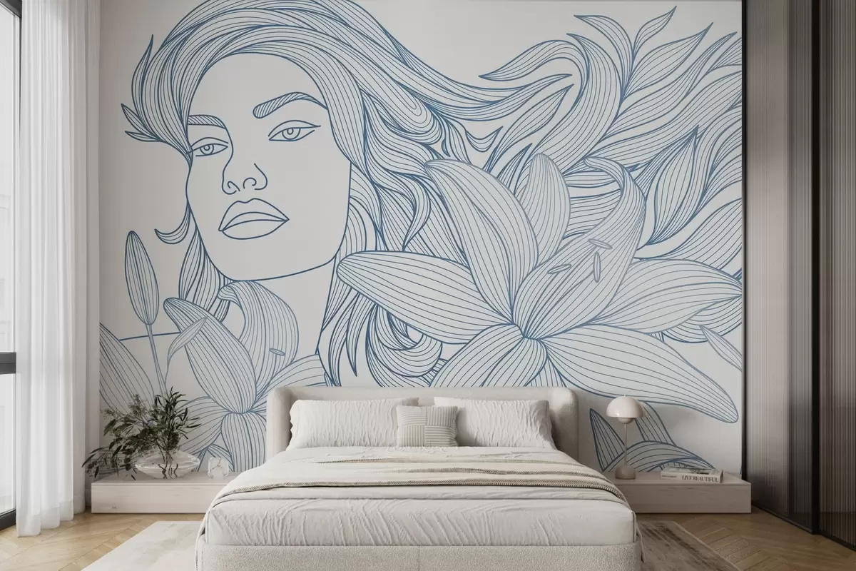 Portrait of a girl in lily flowers shades of blue - Wall mural (No. w04689v2)