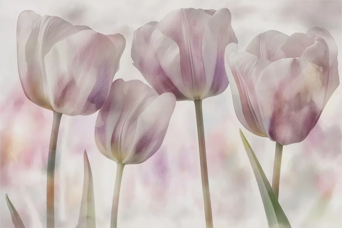 Tulips in soft colours - Wall mural (No. w04700)