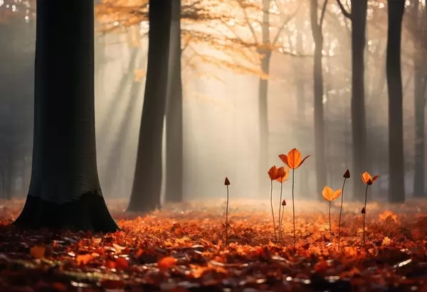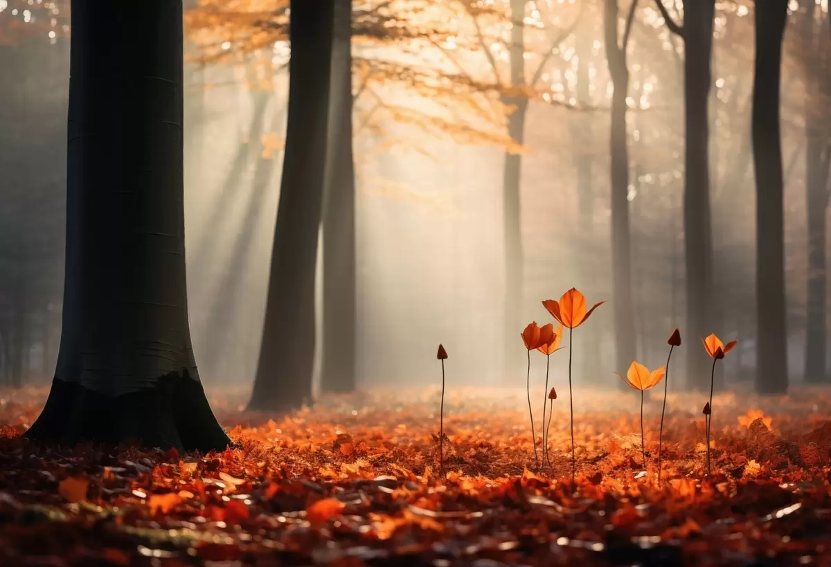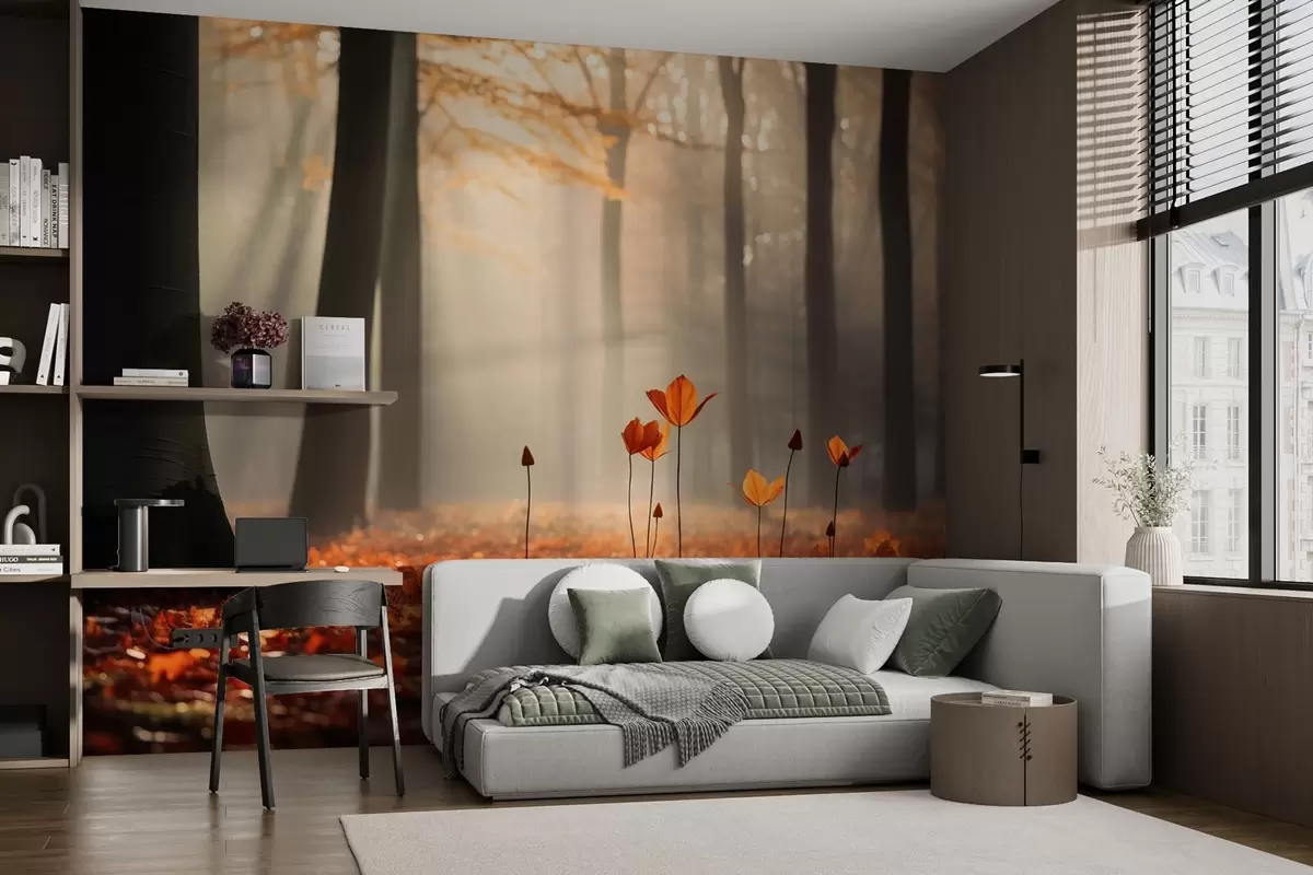 Autumn forest with sun rays and bright foliage - Wall mural (No. w04710)