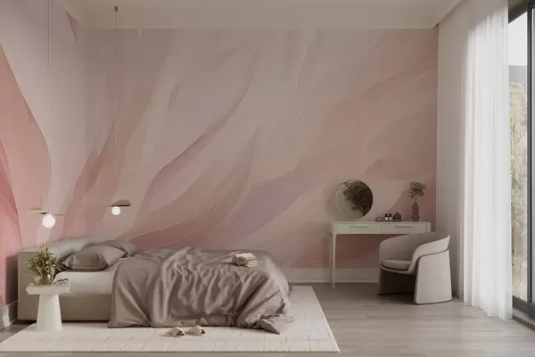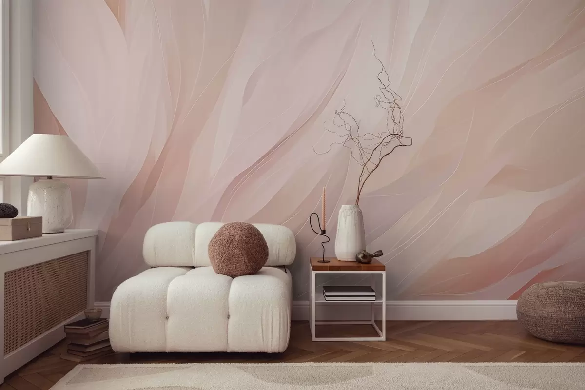 Abstract soft strokes in pastel pink and peach tones - Wall mural (No. w04731)