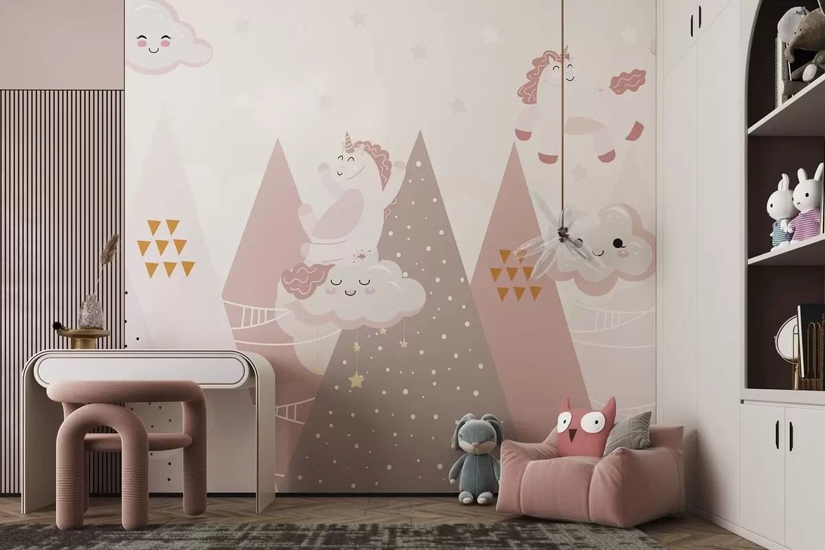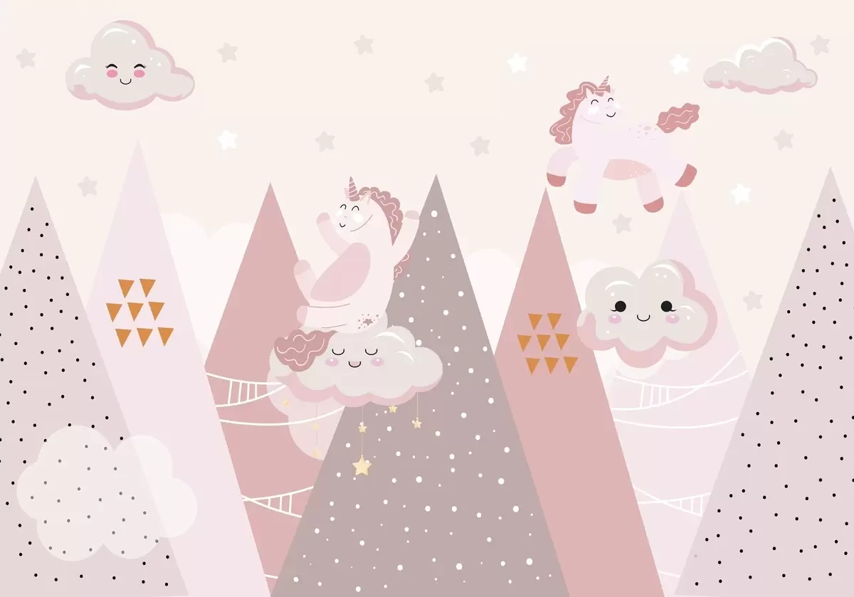 Pony in the mountains with clouds - Wall mural (No. w04741)