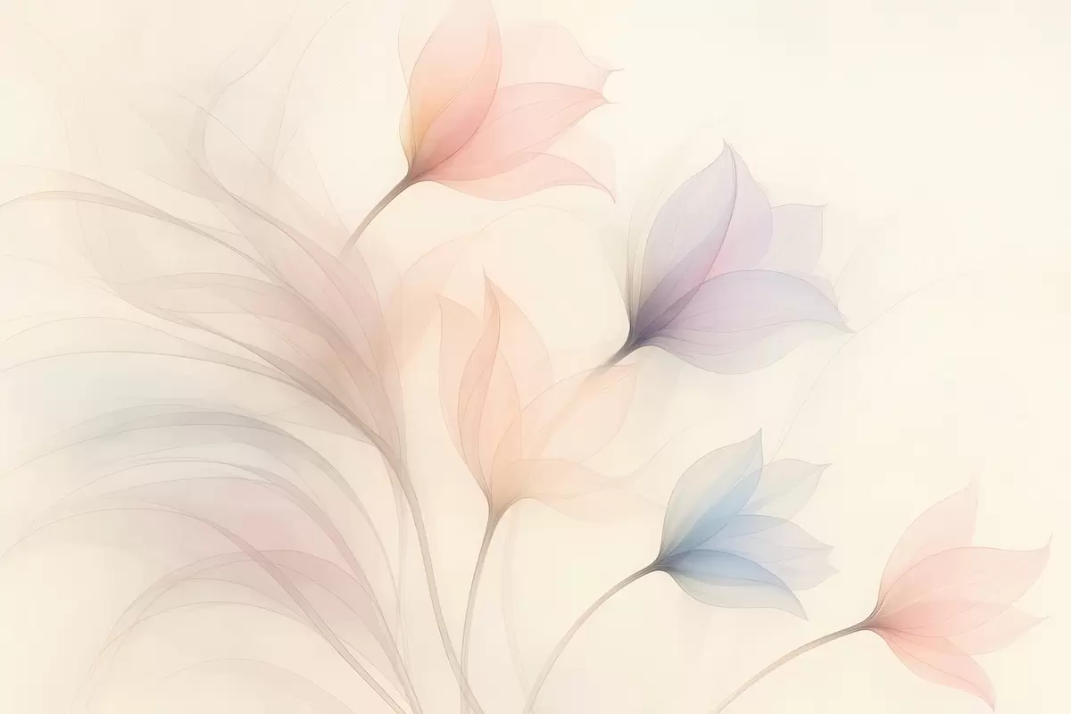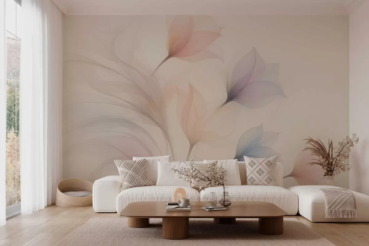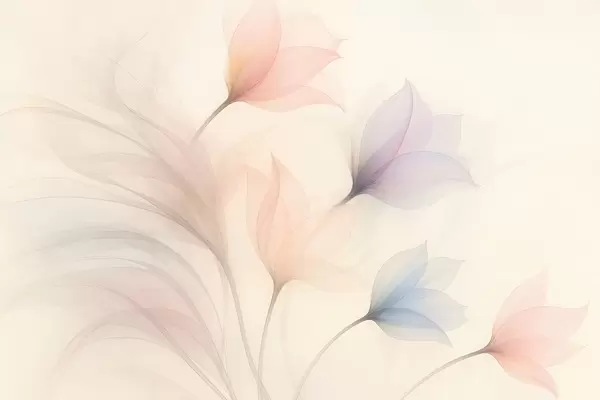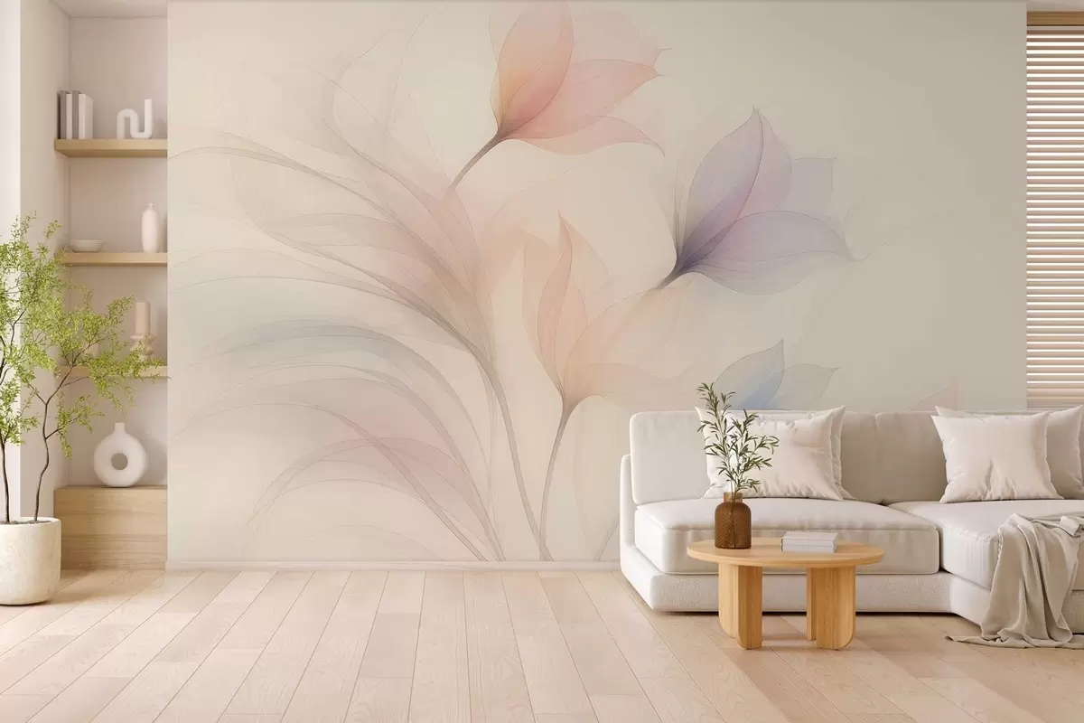 delicate semi-transparent tulips on a beige background - Wall mural (No. w04754)
