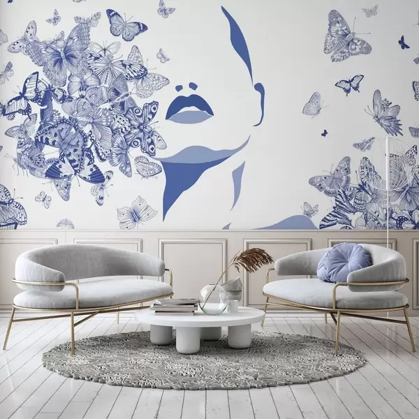 Silhouette of a face among butterflies - Wall mural (No. w04778v1)