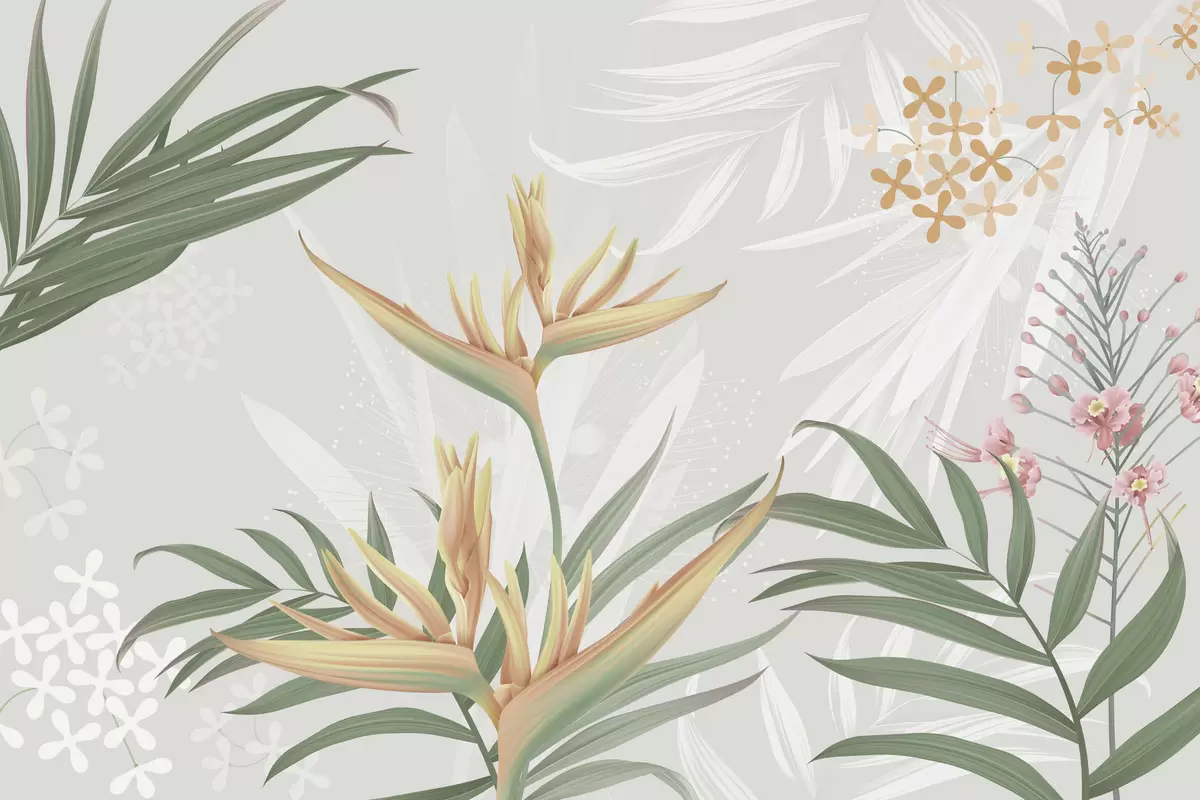 Exotic Strelitzia flowers in foliage - Wall mural (No. w04783)