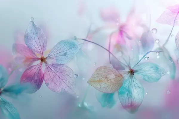 delicate flowers with veins under water - Wall mural (No. w04809)