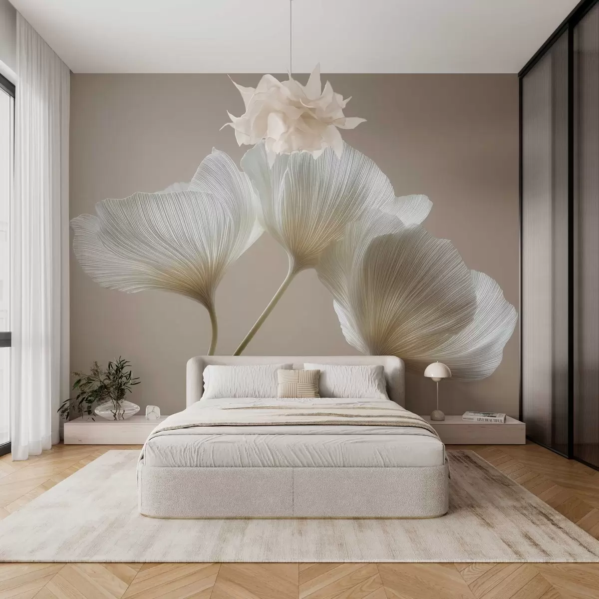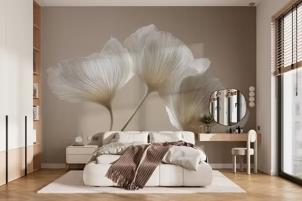 three delicate flowers on a beige background - Wall mural (No. w04810)