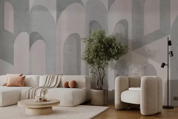 urban metamorphoses of the arch in powder grey tones - Wall mural (No. w04812)