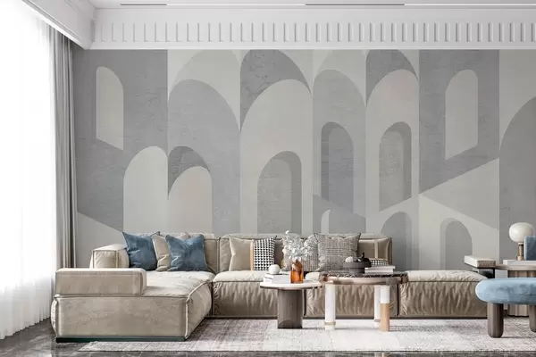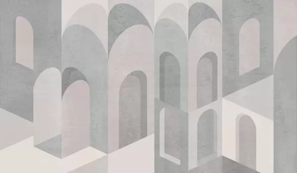 urban metamorphoses of the arch in grey and cool beige tones - Wall mural (No. w04812v1)