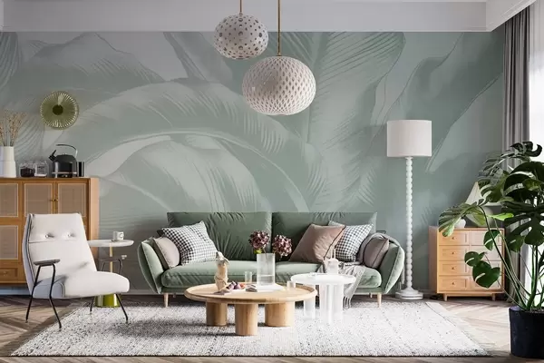 Long leaves, banana leaves with a worn effect - Wall mural (No. w04827v3)