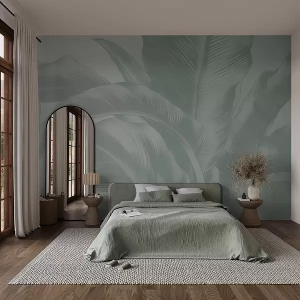 Long leaves, banana leaves with a worn effect - Wall mural (No. w04827v3)
