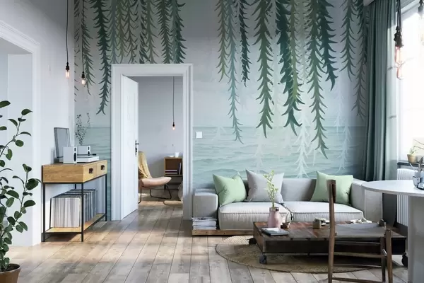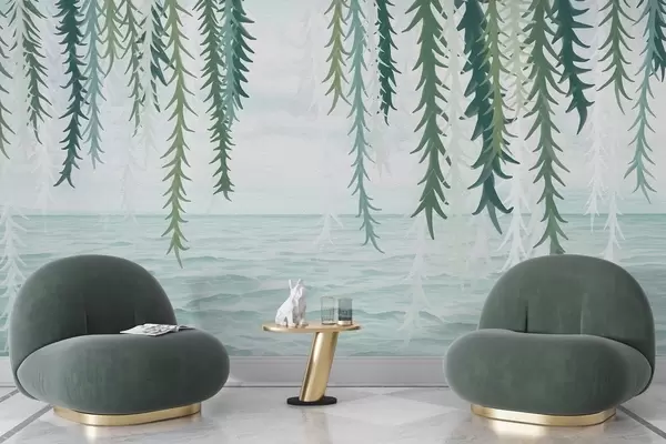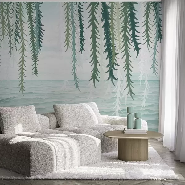 Delicate vines hanging over water watercolor style - Wall mural (No. w04830)