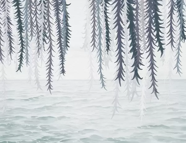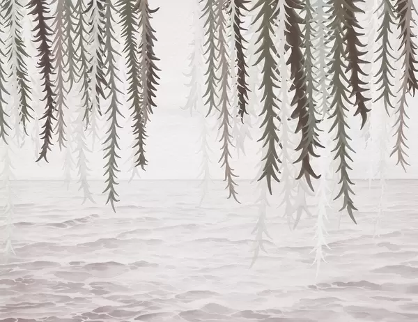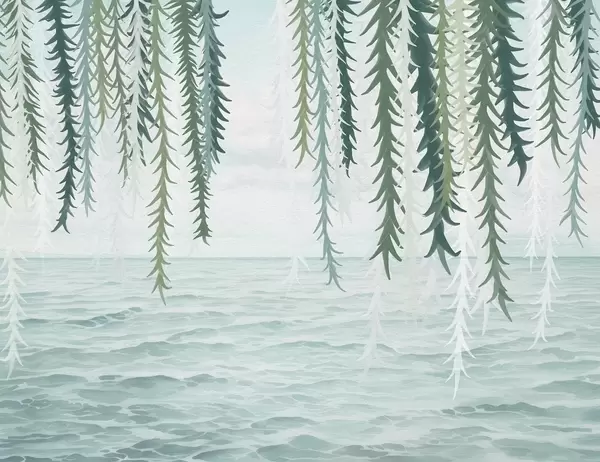 Delicate vines hanging over water watercolor style - Wall mural (No. w04830v2)