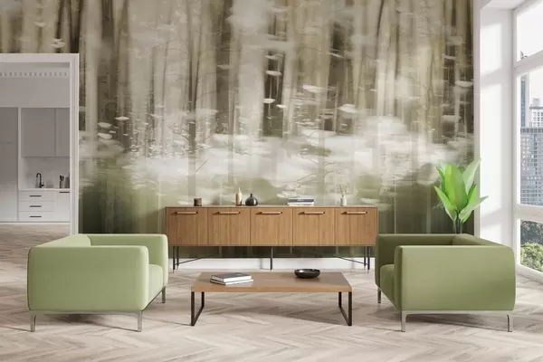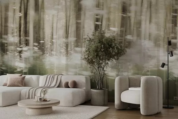 Stylized tree trunks in pastel colors - Wall mural (No. w04844)