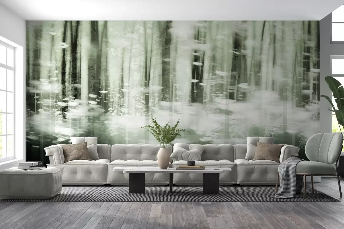 Stylized tree trunks in pastel colors - Wall mural (No. w04844v3)