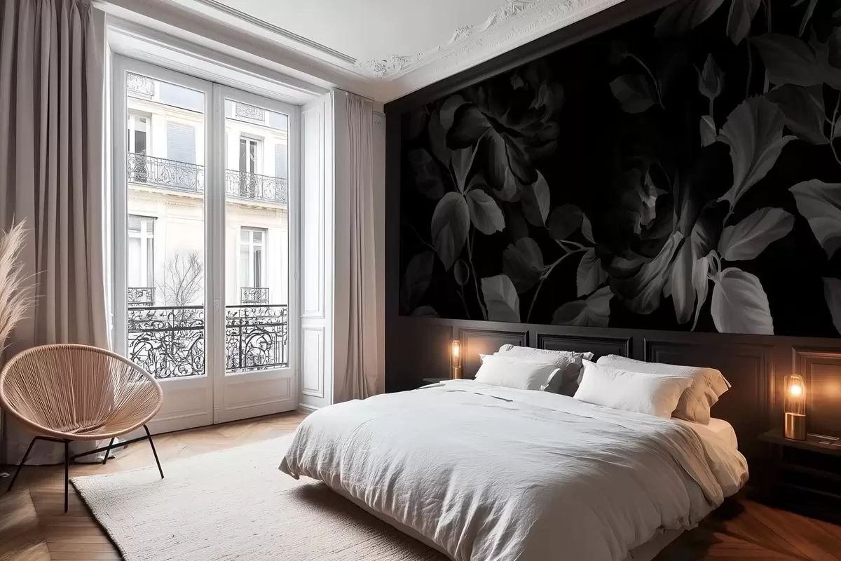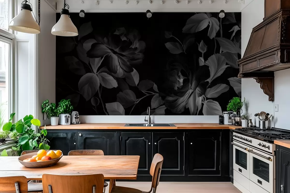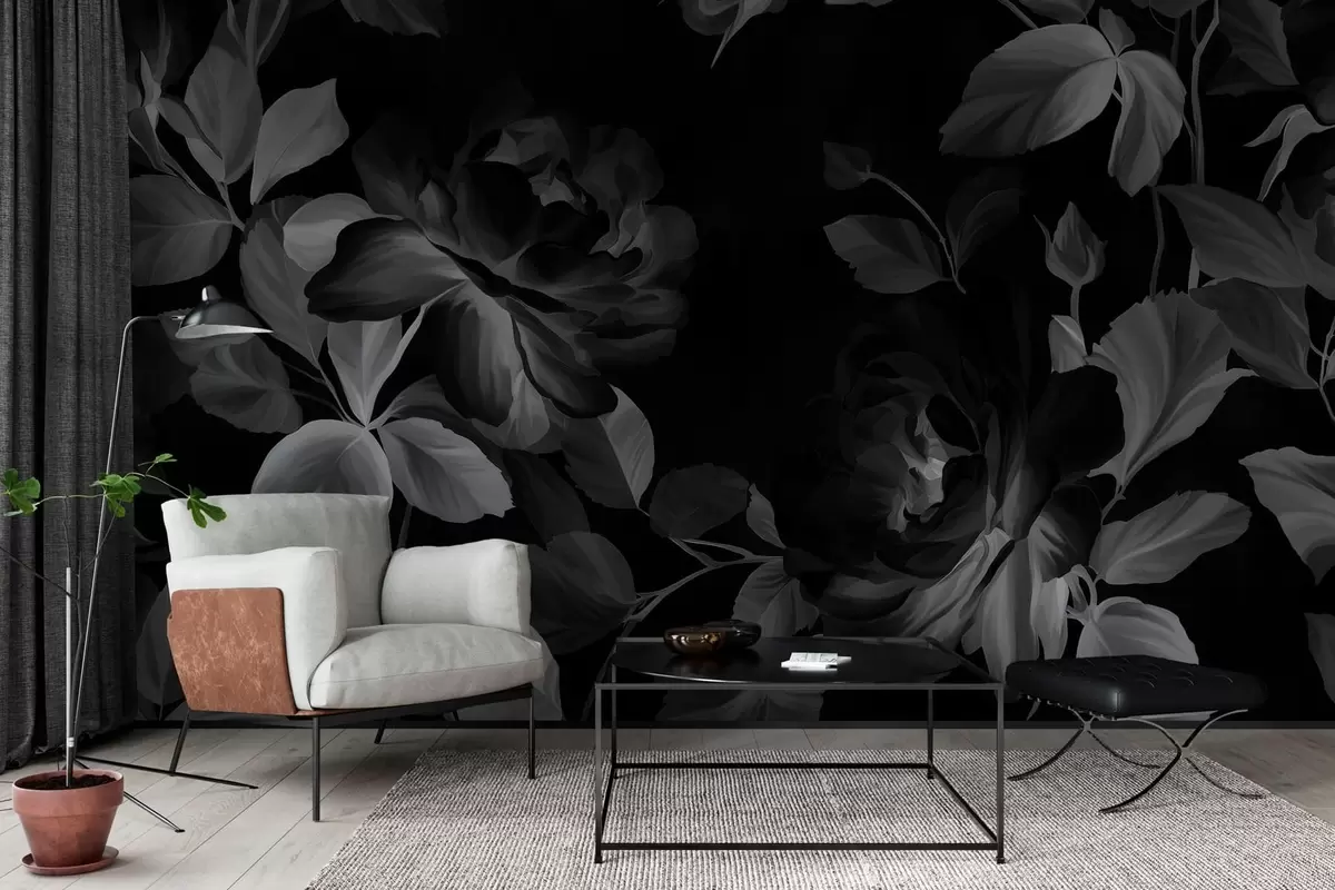 black and white picturesque roses in the style of oil painting - Wall mural (No. w04873v1)