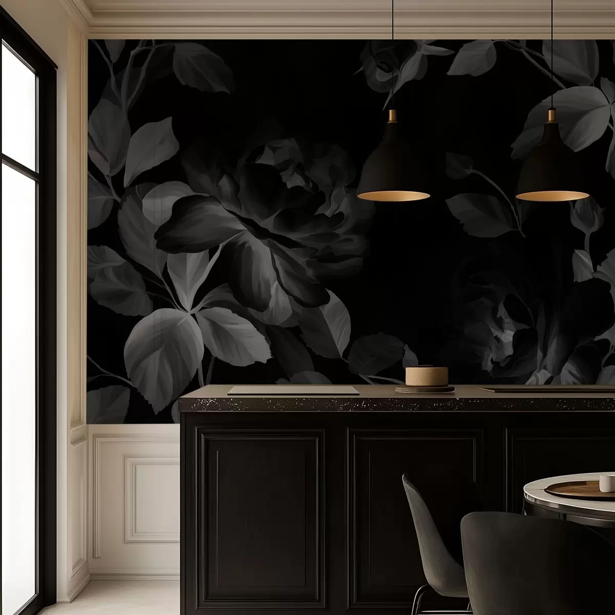 black and white picturesque roses in the style of oil painting - Wall mural (No. w04873v1)