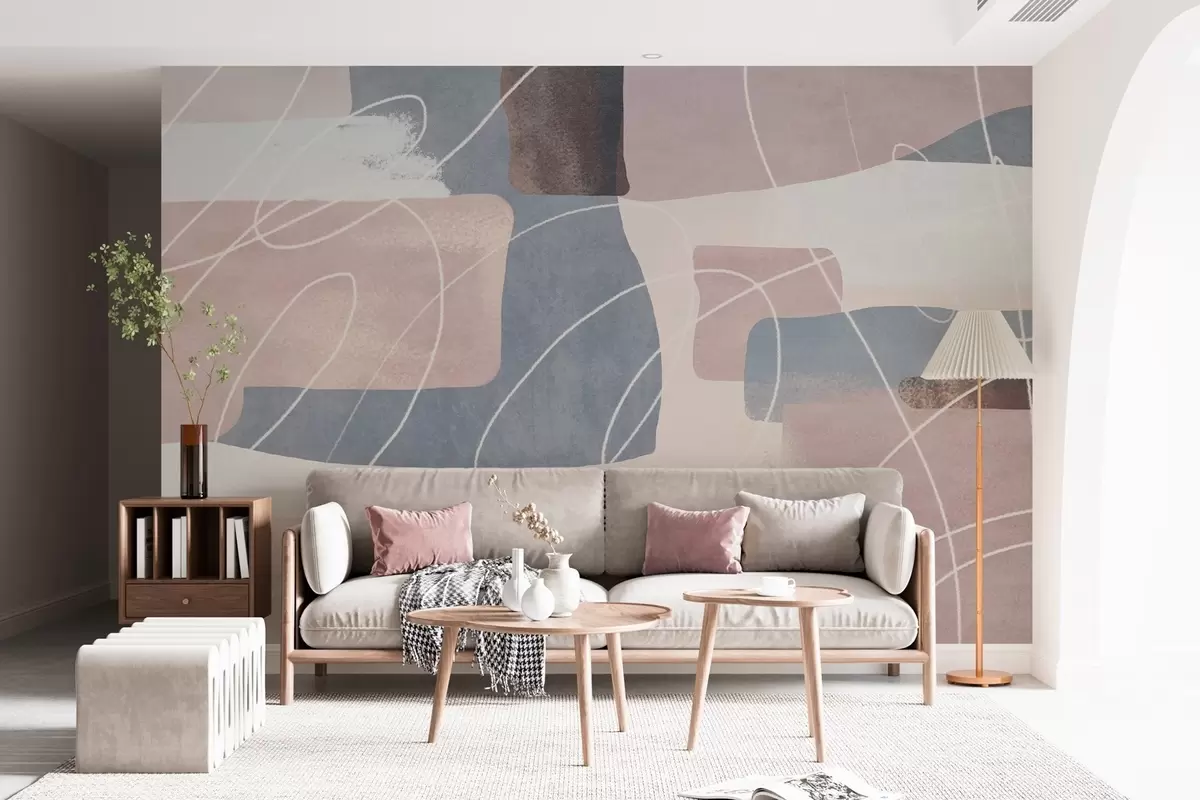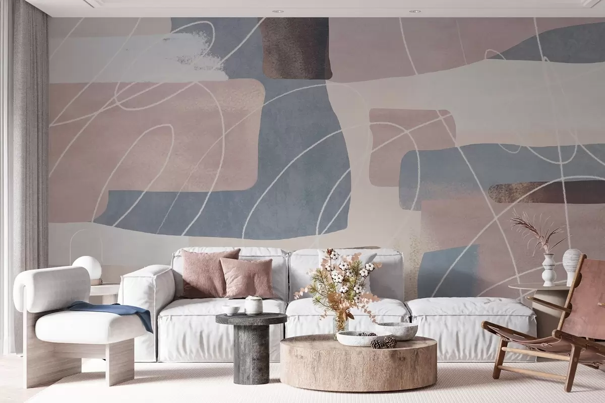 modern abstraction in shades of powder pink, gray-blue, beige, and brown - Wall mural (No. w04877)
