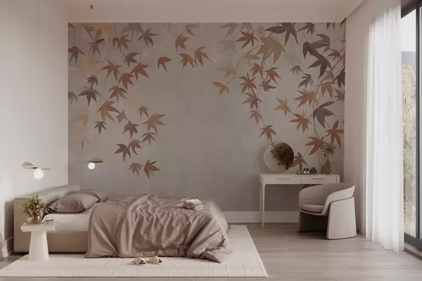multicolored ivy leaves falling from above in the style of oil painting - Wall mural (No. w04878)