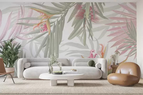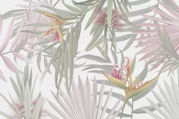 Strelitzia in palm foliage - Wall mural (No. w04896v1)