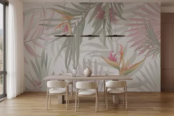 Strelitzia in palm foliage - Wall mural (No. w04896v1)