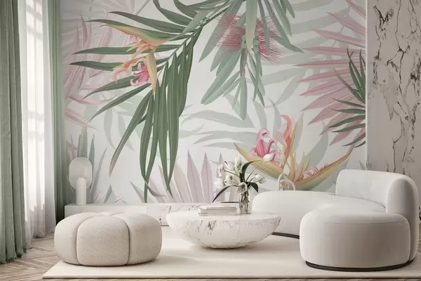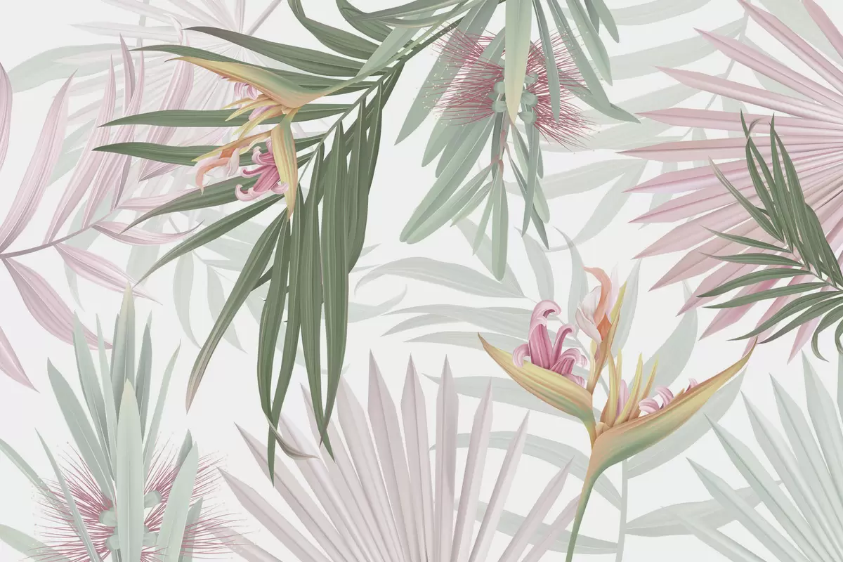 Strelitzia in palm foliage - Wall mural (No. w04896v2)