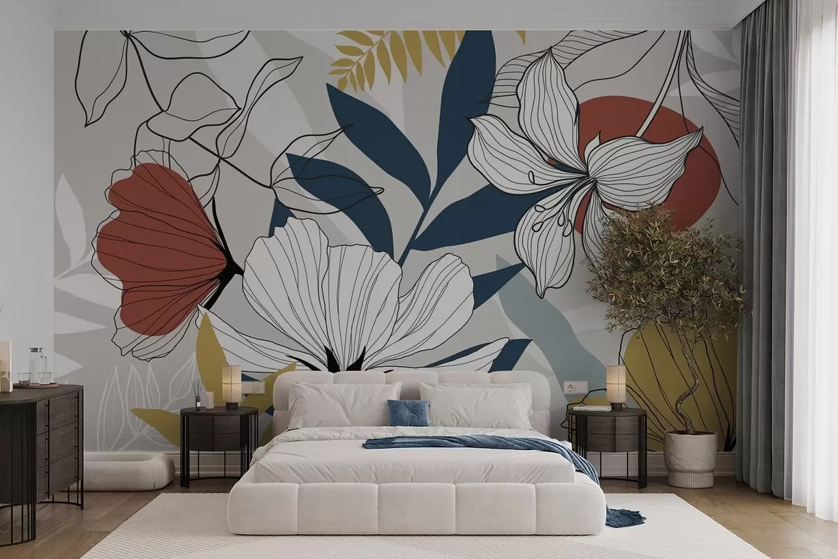 Abstract plants and flowers - Wall mural (No. w04898v1)