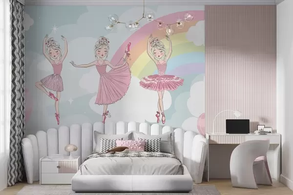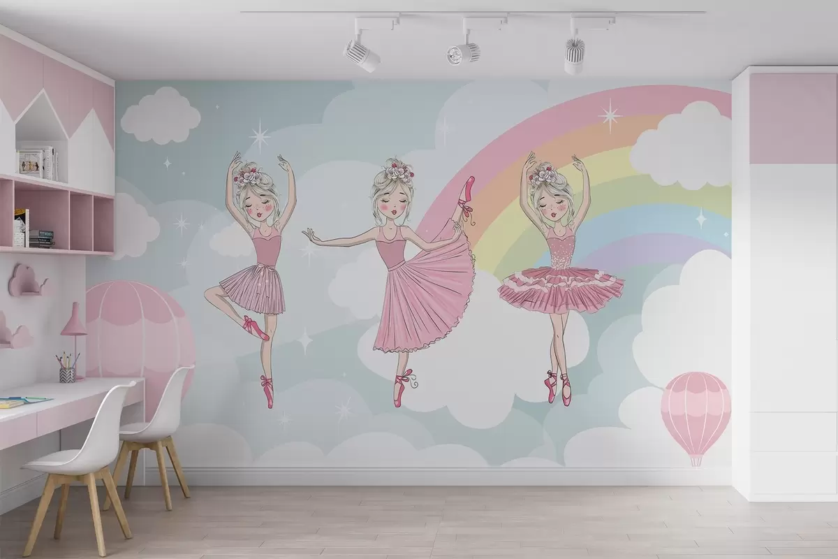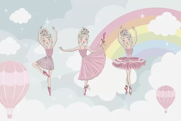 Princesses against the backdrop of the sky and rainbow - Wall mural (No. w04907)