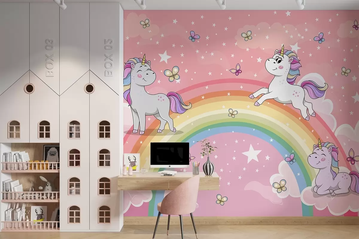 Unicorns on a rainbow - Wall mural (No. w04930)