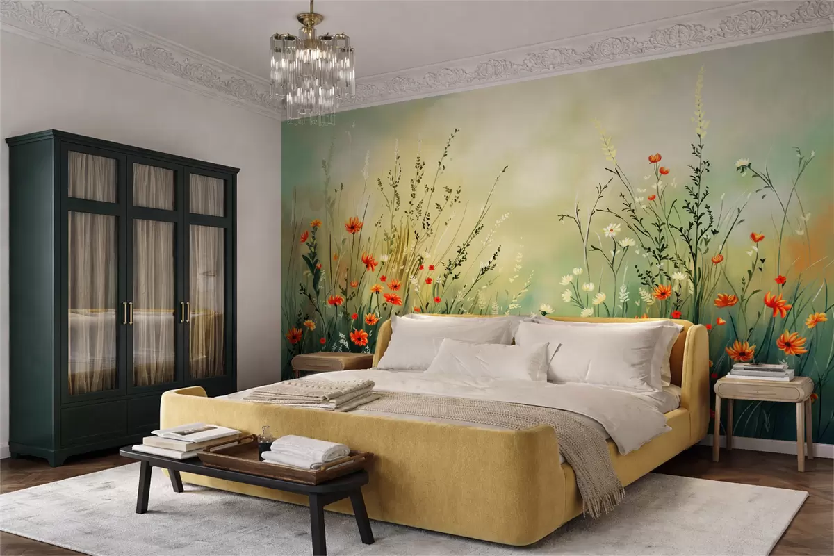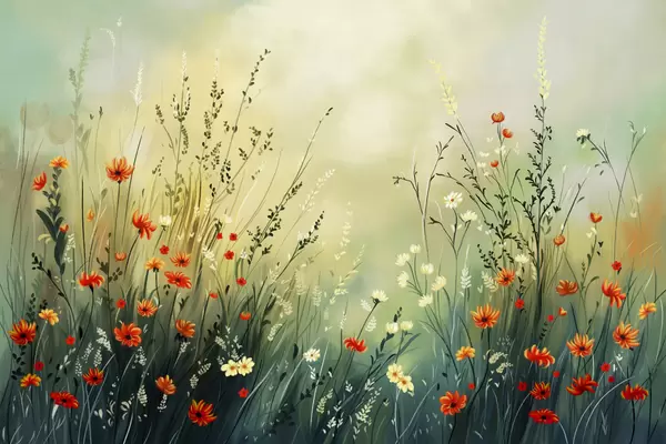 Meadow flowers and grasses in soft painterly style - Wall mural (No. w05015)