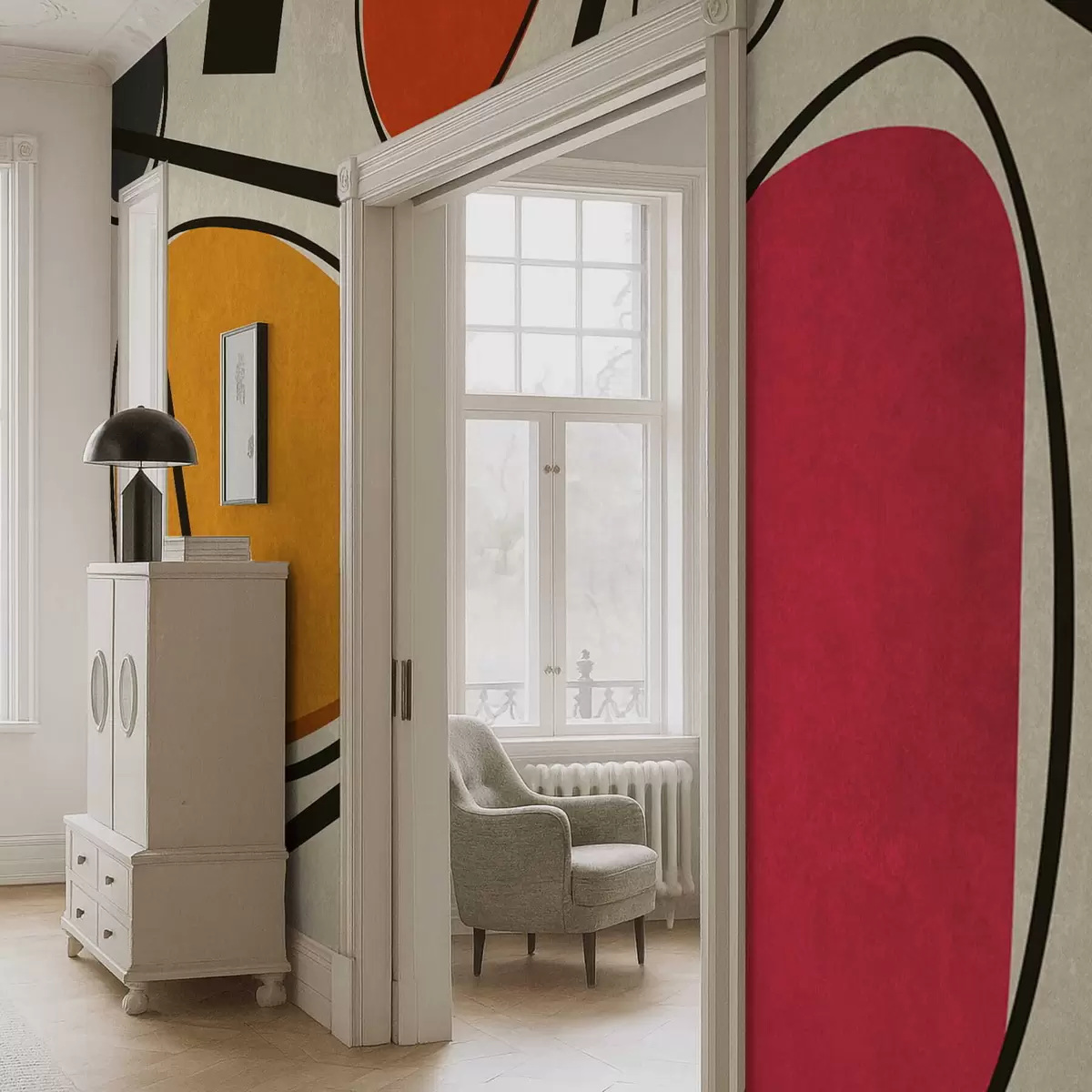 wall murals Abstract shapes and lines with bold color fields w05017