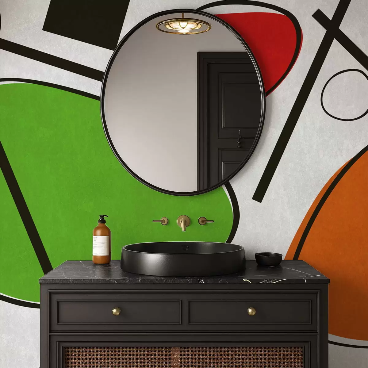 Abstract geometric shapes with lines and bold color areas - Wall mural (No. w05017v1)