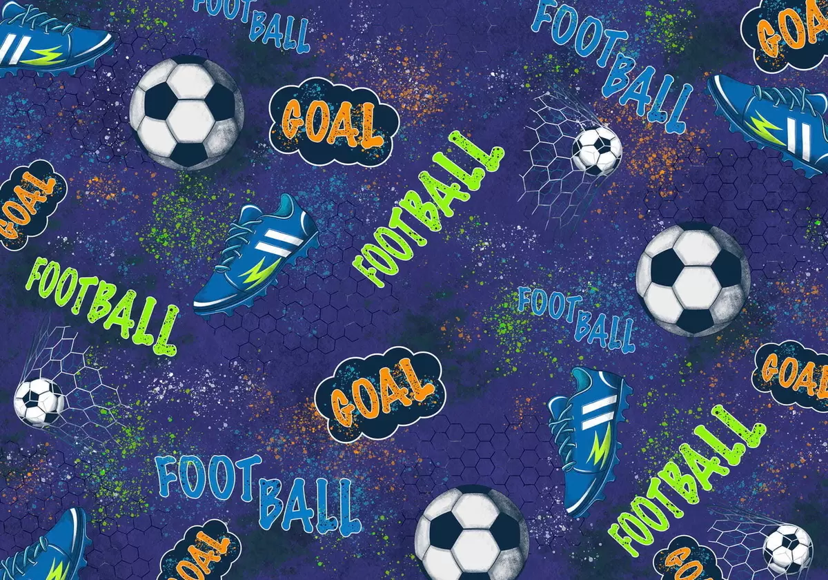 Kids football pattern in dark blue tones - Wall mural (No. w05037v3)