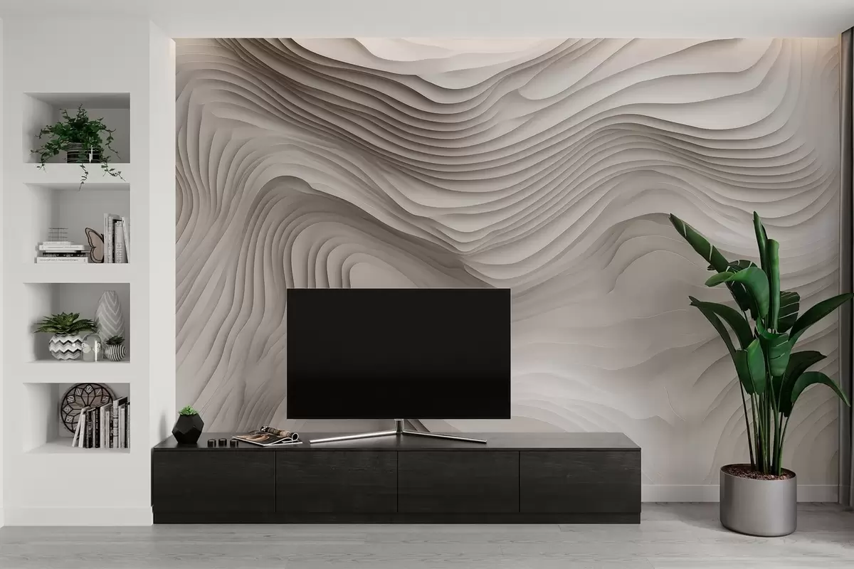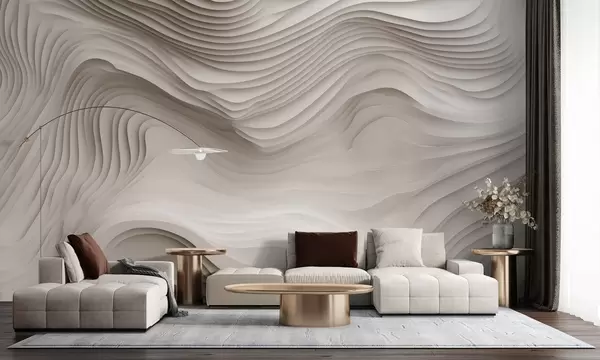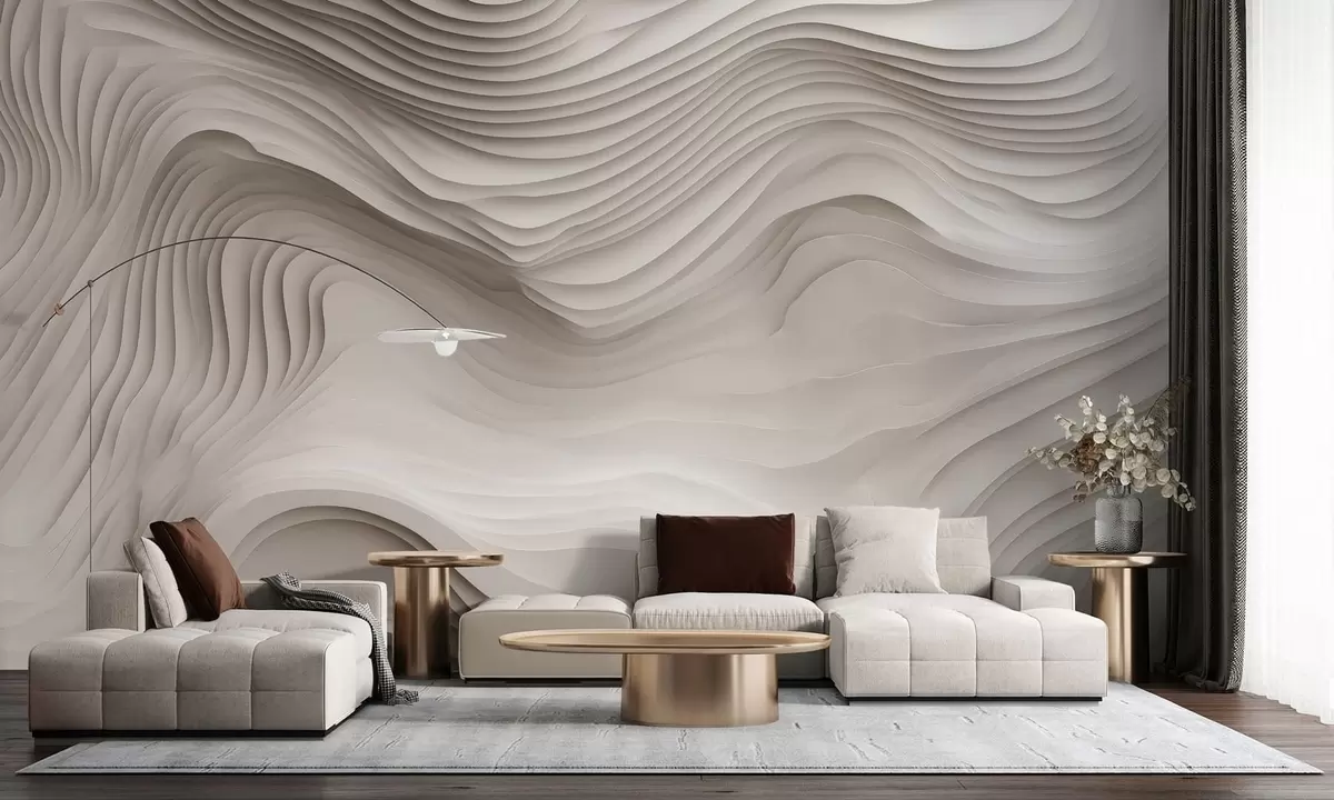 imitation of voluminous stepped reliefs in beige tones - Wall mural (No. w05061v1)