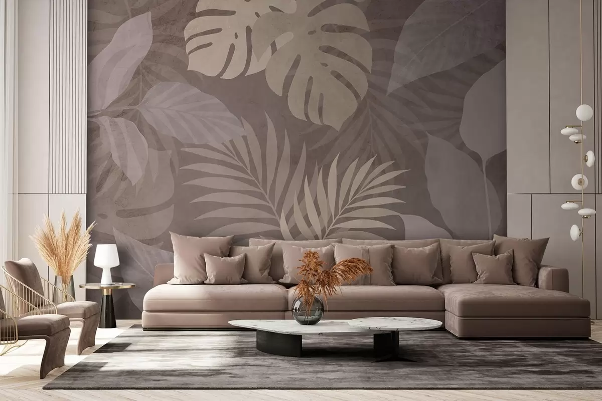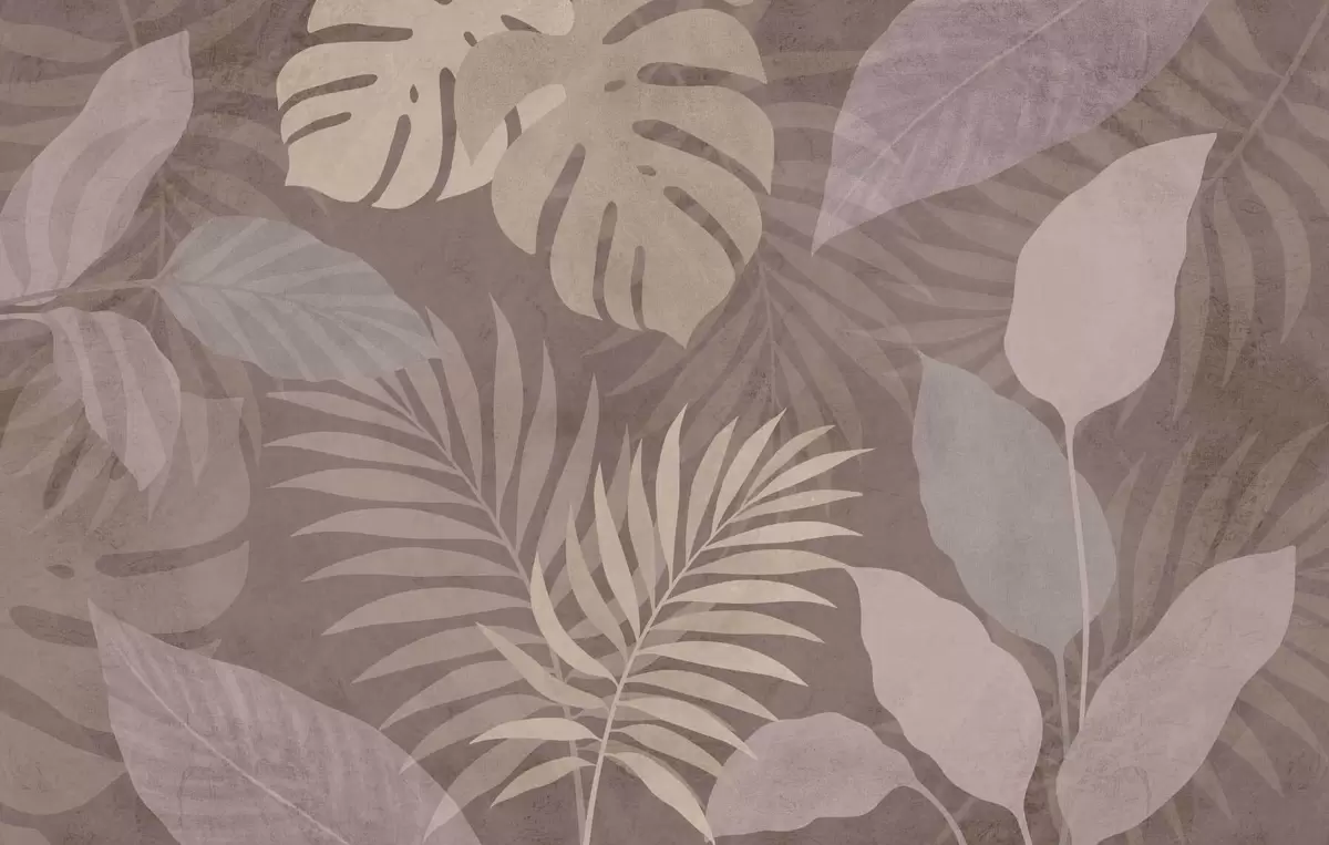 textured tropical leaves on a chocolate background - Wall mural (No. w05063v2)