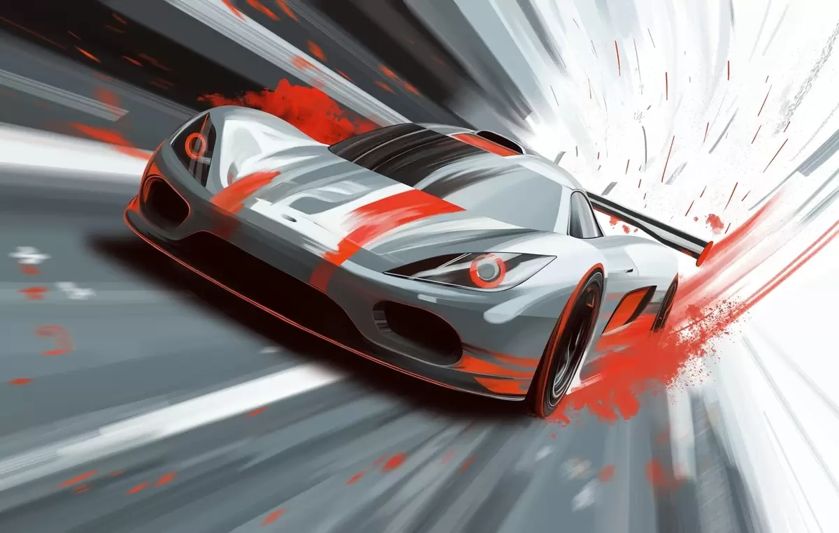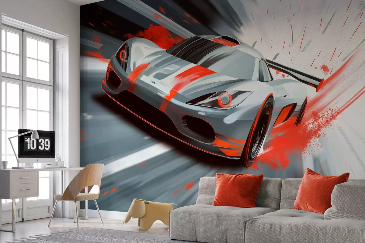 dynamic sports car in digital drawing style with red accents - Wall mural (No. w05069v1)