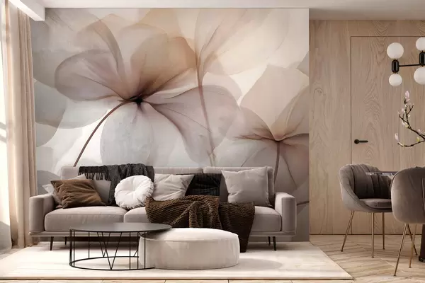 semi-transparent flowers with veins - Wall mural (No. w05070)