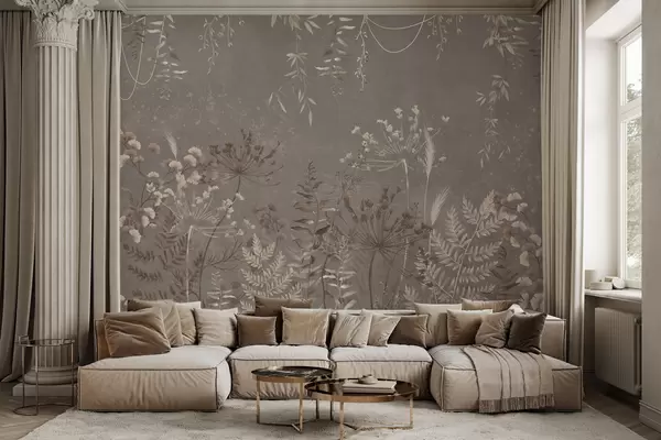 Light botanical pattern with flowers and leaves - Wall mural (No. w05092v1)