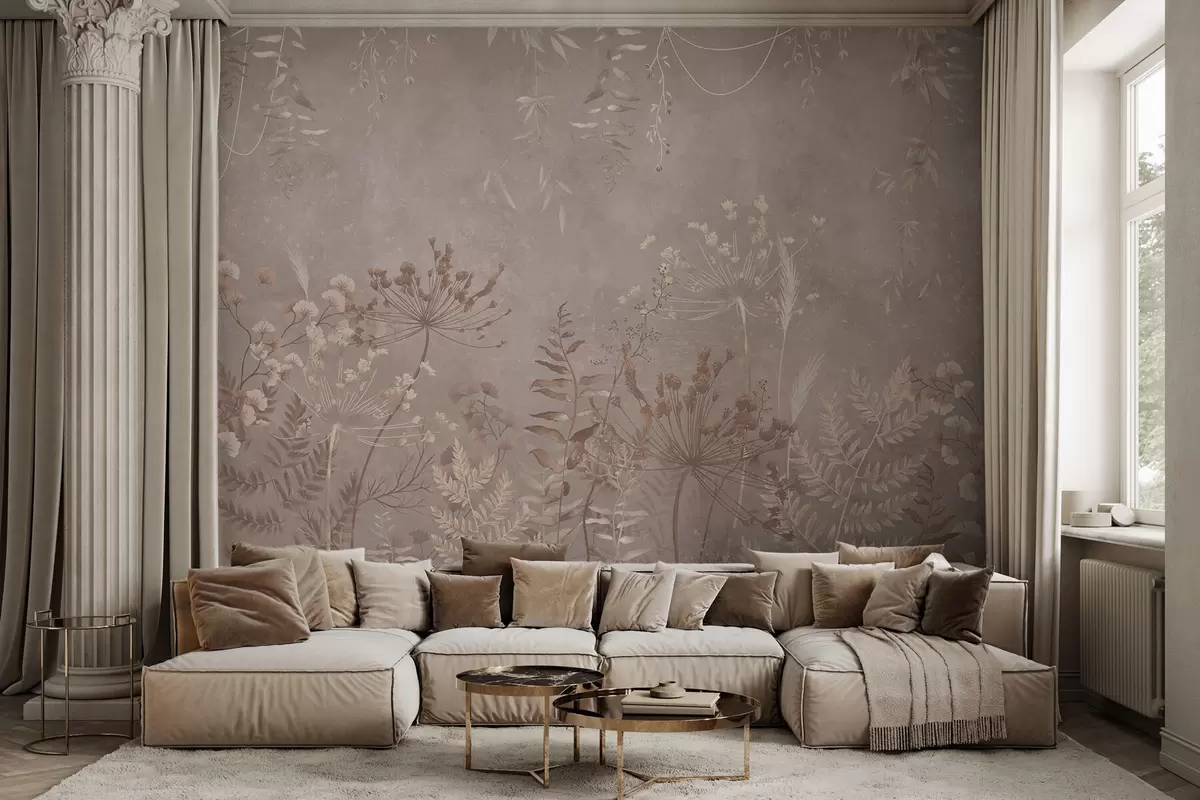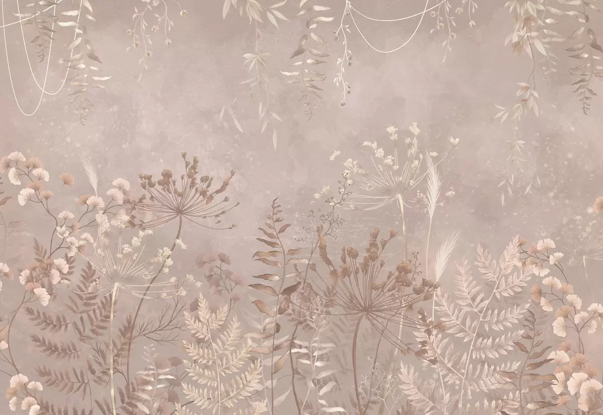 Soft beige botanical pattern with wild flowers - Wall mural (No. w05092v2)