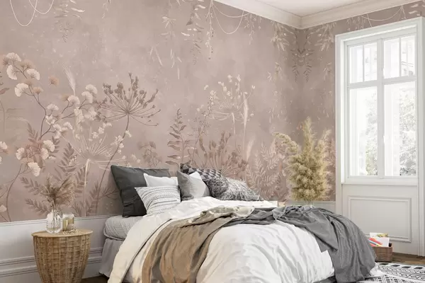 Soft beige botanical pattern with wild flowers - Wall mural (No. w05092v2)