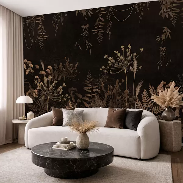 Dark botanical pattern with flowers and grasses - Wall mural (No. w05092v3)
